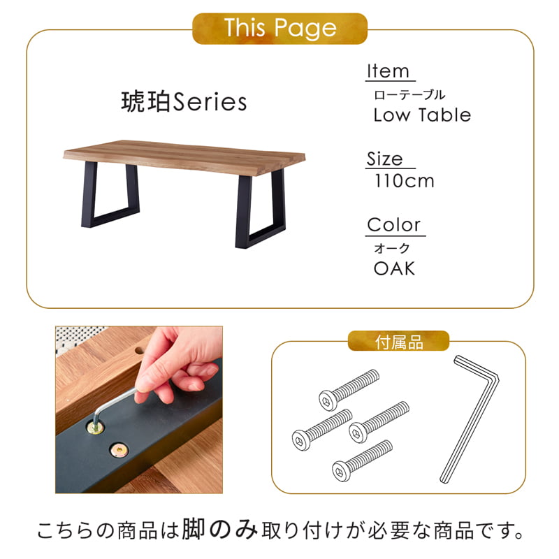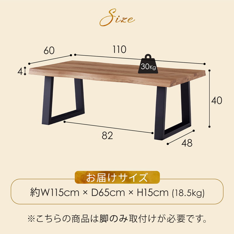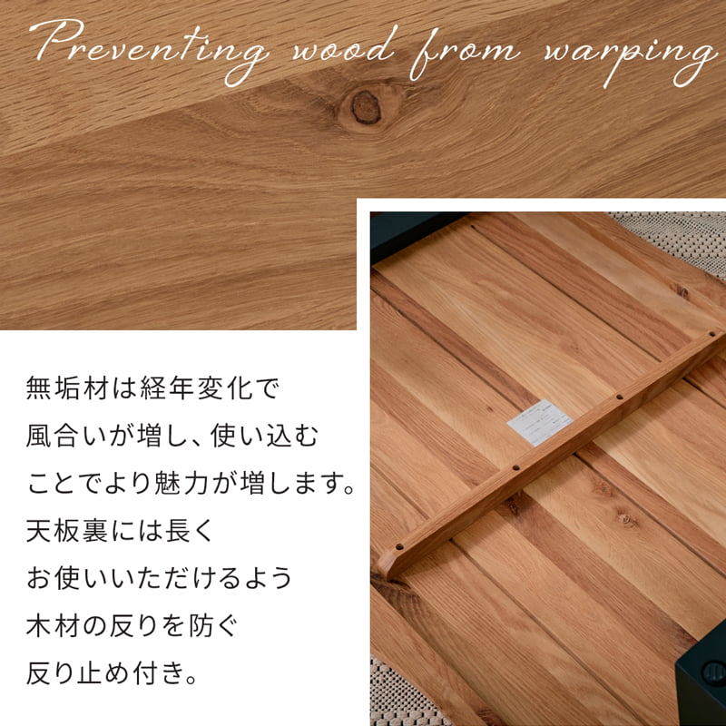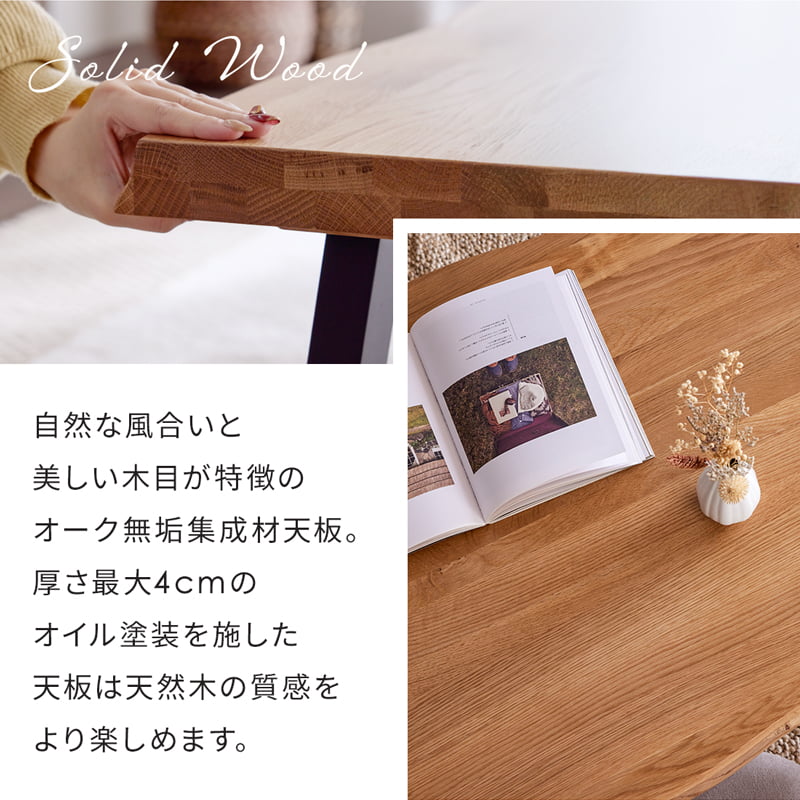 ・天然木の風合いが美しい、重厚感のあるオーク材センターテーブル。