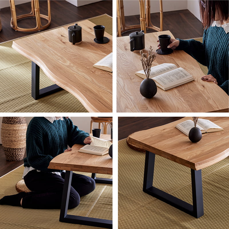 ローテーブル センターテーブル ローデスク 座卓 ちゃぶ台 ミニ テーブル 長方形 コンパクトサイズ シンプル ナチュラル 高級感 和モダン 和風 おしゃれ かっこいい インダストリアル 北欧 黒 ブラック オーク 天然木 木 無垢材 オーク材 無垢集合材 木目 ファミリー ワンルーム 一人暮らし 二人暮らし 1人 2人 100 110