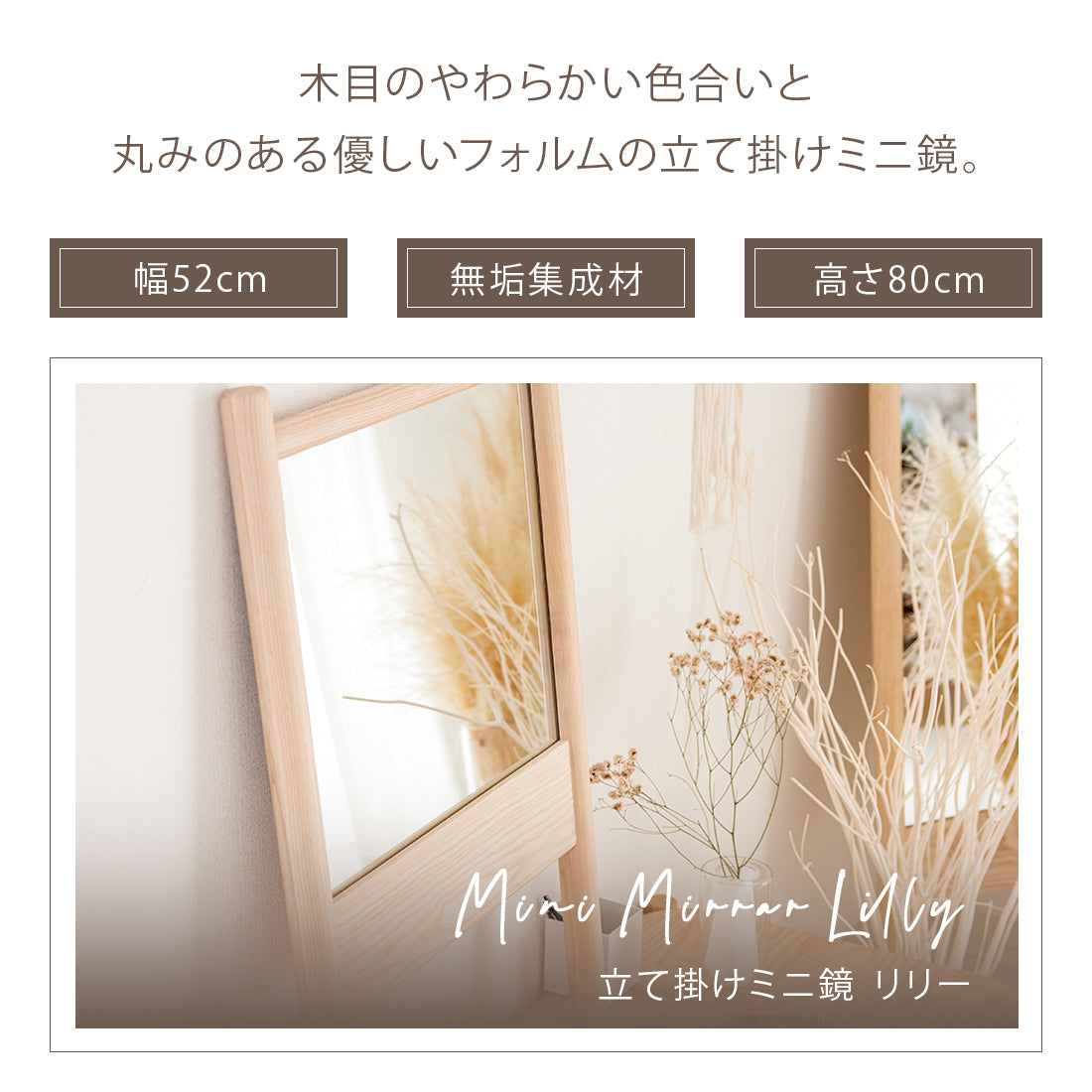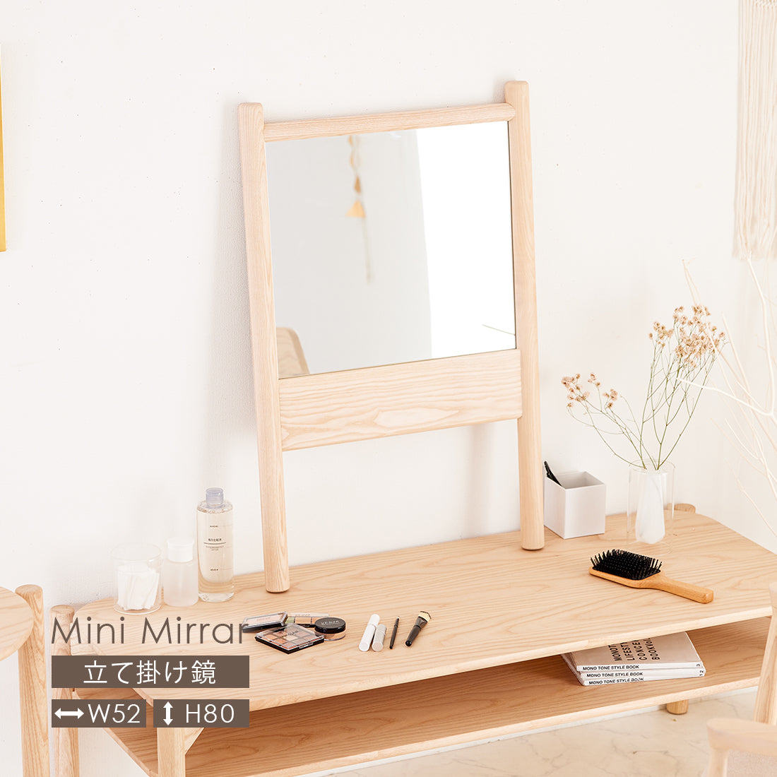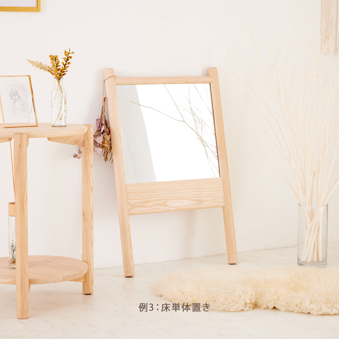 【無垢材を使用したナチュラルな立て掛けミニ鏡】