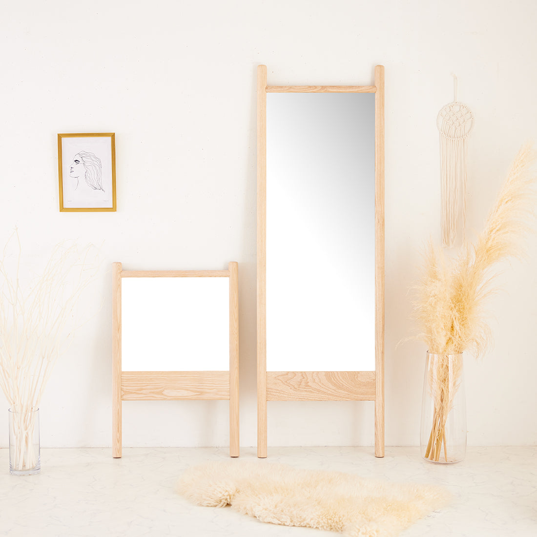立て掛け鏡 鏡 スタンドミラー 置き鏡 ミラー おしゃれ 飛沫防止 アッシュ無垢材 無垢材 天然木 木製 高さ80cm 幅52cm 一人暮らし インスタ 韓国 韓国風 インテリア かわいい ナチュラル シンプル 北欧 かわいい リビング 玄関