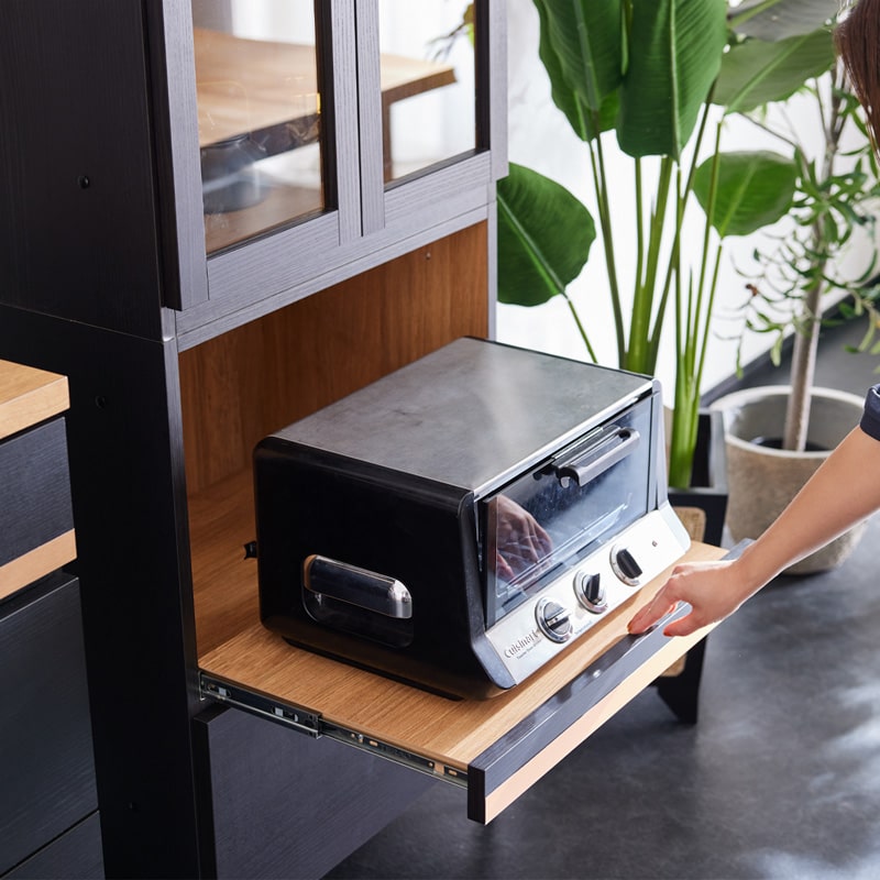 キッチンボード レンジ台 60cm 黒 脚付き 日本製 大川家具 ニュイ