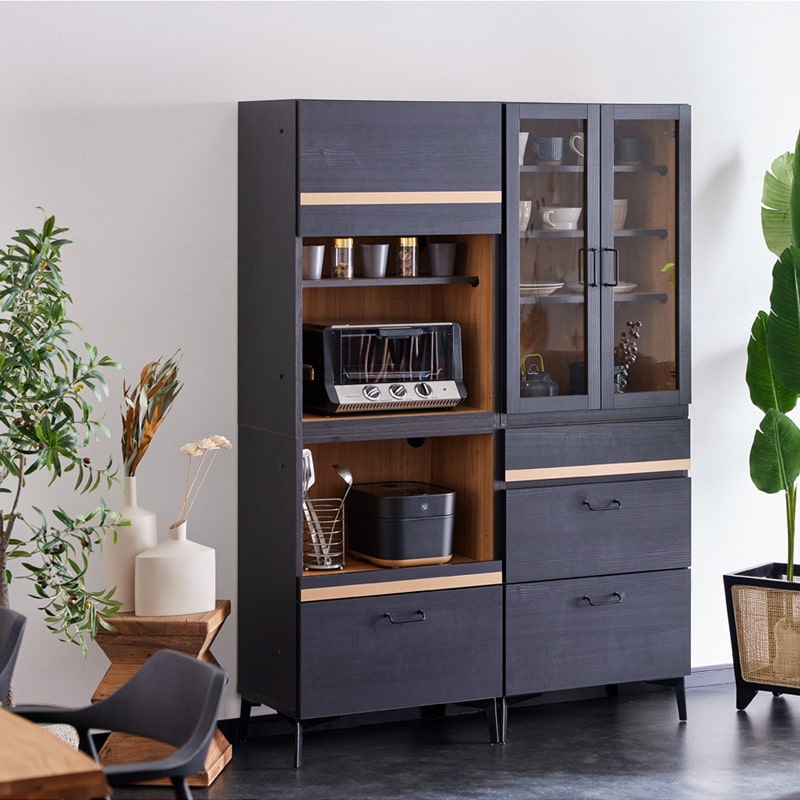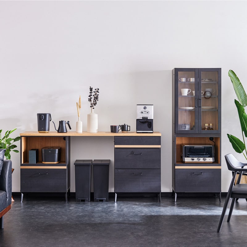 キッチンボード キッチン収納 食器棚 カップボード キッチン 収納 収納棚 レンジ台 レンジボード キッチンキャビネット キッチンラック ダイニングボード 60cm 60 幅60 120 120cm 幅120 ハイタイプ スリム コンパクト 木製 引き出し 扉収納 スライド棚 脚付き ブラック 黒 ゴールド モノトーン 国産 日本製 大川家具 半 完成品 おしゃれ モダン スタイリッシュ 北欧 シンプル