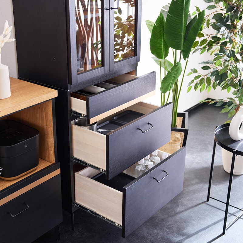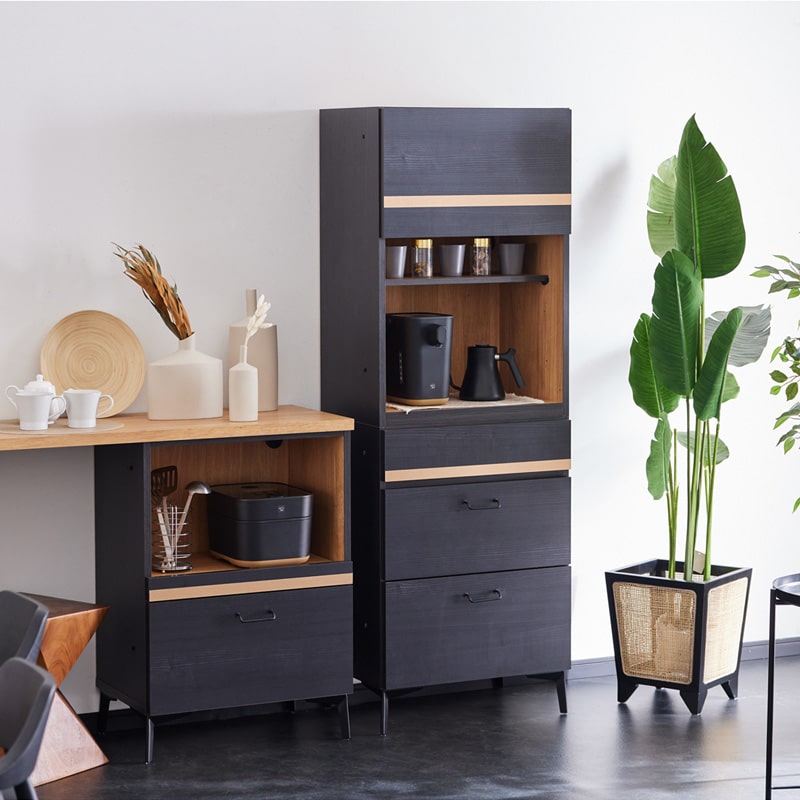 キッチンボード キッチン収納 食器棚 カップボード キッチン 収納 収納棚 レンジ台 レンジボード キッチンキャビネット キッチンラック ダイニングボード 60cm 60 幅60 120 120cm 幅120 ハイタイプ スリム コンパクト 木製 引き出し 扉収納 脚付き ブラック 黒 ゴールド モノトーン 国産 日本製 大川家具 半 完成品 おしゃれ モダン スタイリッシュ 北欧 シンプル