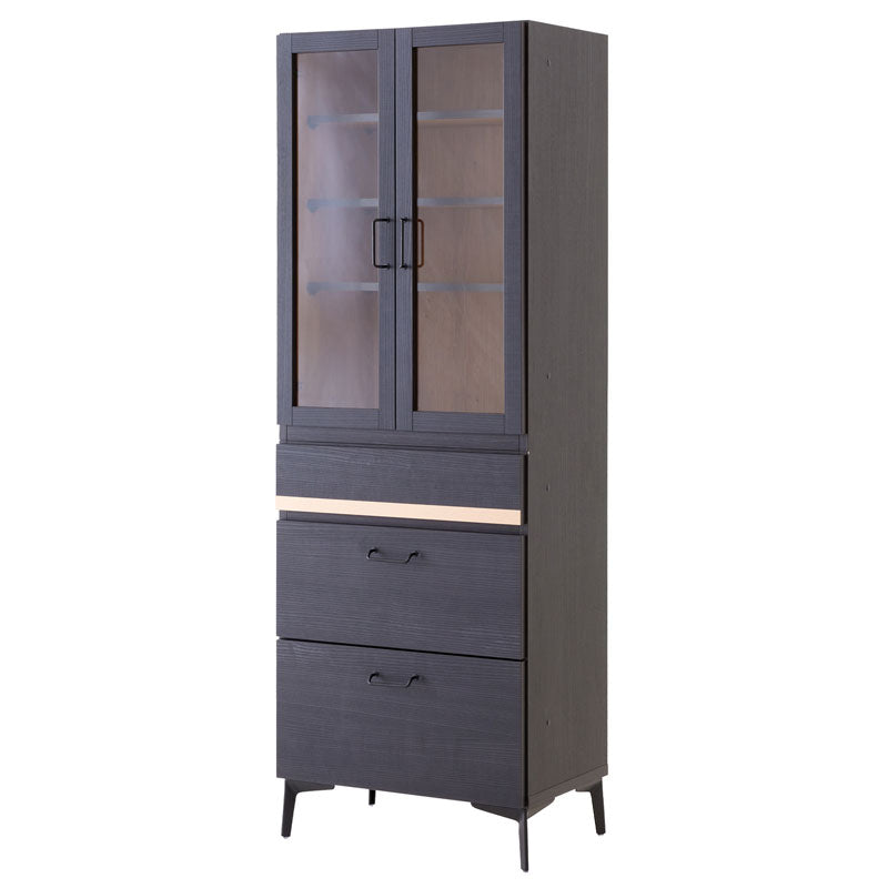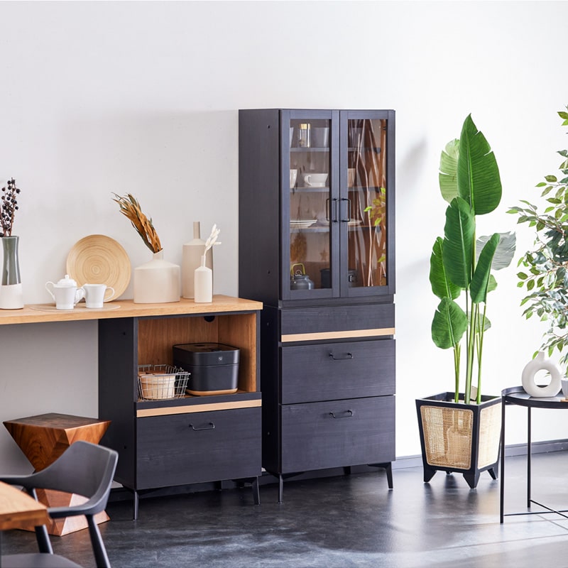 キッチンボード 食器棚 60cm 黒 脚付き 日本製 大川家具 ニュイ