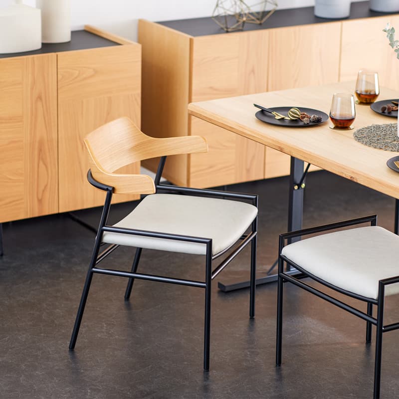 ダイニングチェア ダイニングチェアー チェア チェアー 椅子 いす イス ダイニング アームチェア ラウンジチェア 木製椅子 食卓椅子 単品 1脚 完成品 背もたれ ひじ掛け 肘付き 肘付 ペーパーコード ファブリックレザー ファブリック PVC PVCレザー 合皮 合成皮革 天然木 木製 ウォールナット オーク スチール スチール脚 アイアン アイアン脚 ブラック脚 ブラック 黒 ブラウン グレー アイボリー ナチュラル ベージュ スタイリッシュ カフェ モダン おしゃれ 北欧 かっこいい 高級