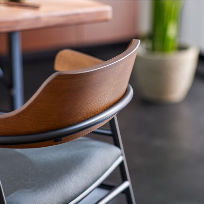 ・背当たりの良い天然木背もたれ、ゆったりくつろげる広めの座面。
