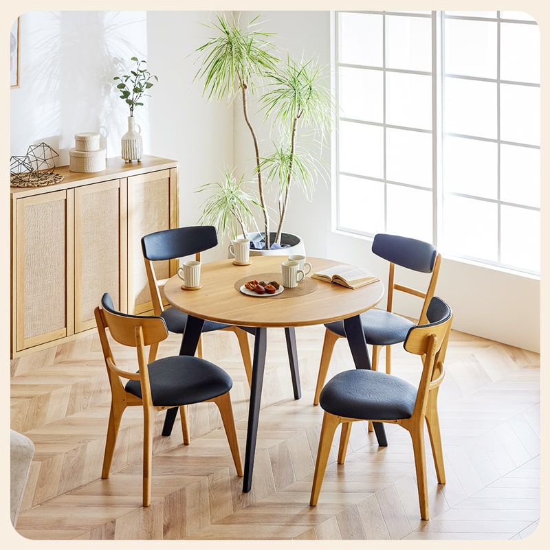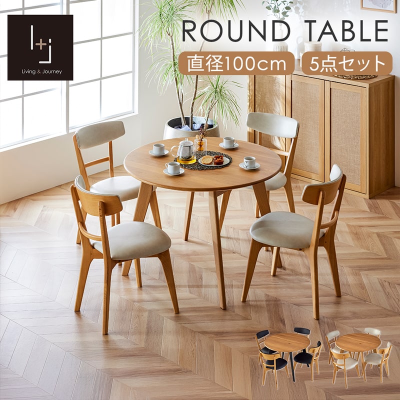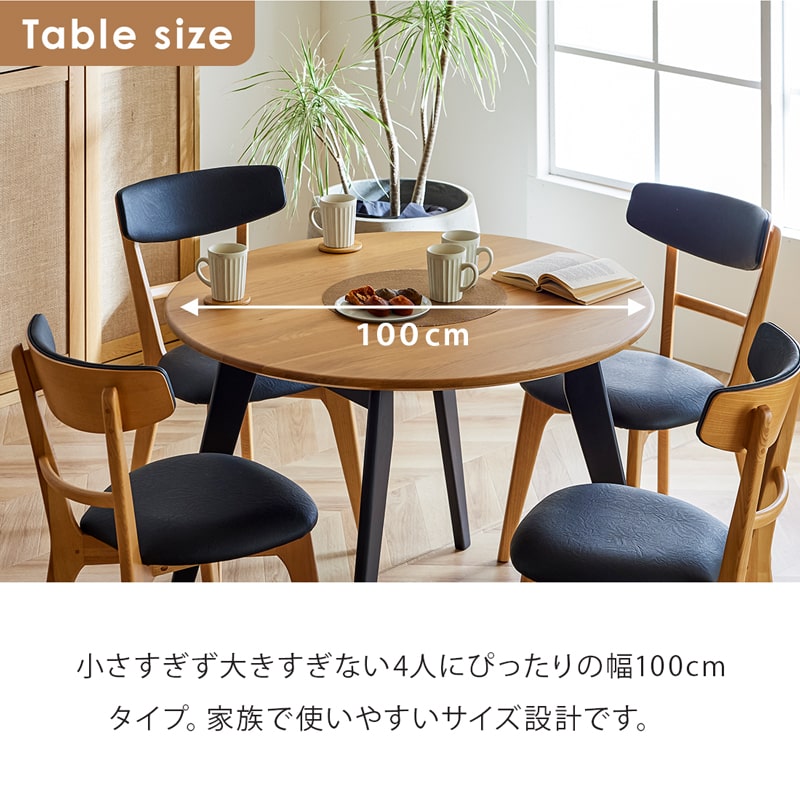 ダイニングセット ダイニングテーブル 丸テーブル ラウンドテーブル ダイニングテーブルセット ダイニング チェアー 食卓 食卓テーブル 丸 丸形 円 円形 ラウンド 4人 4人 4人掛け 4人掛け 4人用 4人用 5点 5点セット 100 幅100cm 100幅 100センチ 木製 木 天然木 無垢 無垢材 オーク オーク材 ナチュラル ブラック 黒脚 おしゃれ 北欧 シンプル モダン カフェ