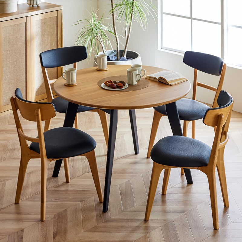 ・座面はブラック/アイボリー、脚はナチュラル/ブラウンの組み合わせから、4パターンお選びいただけます。