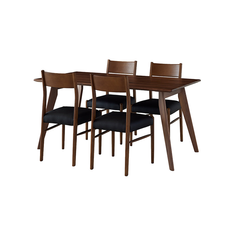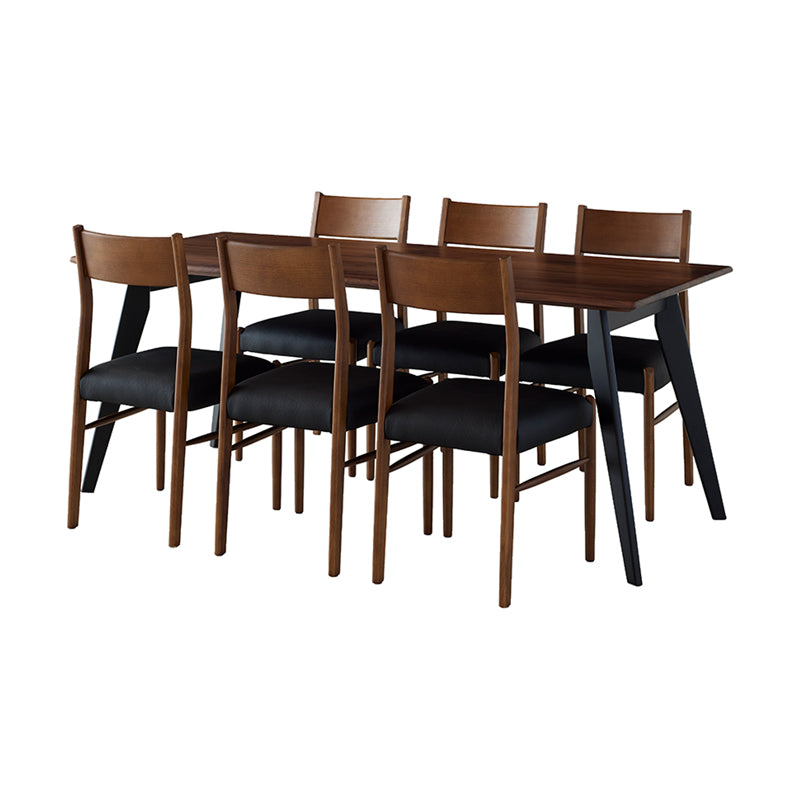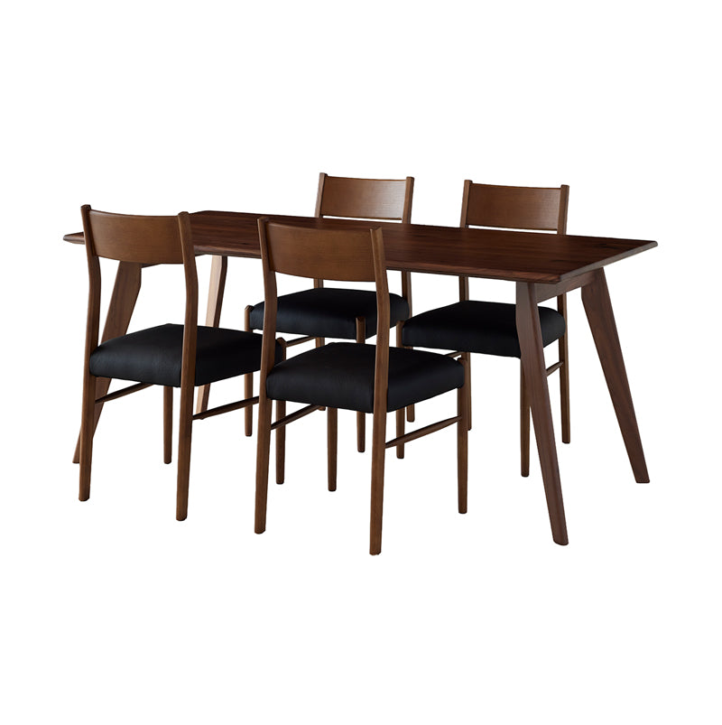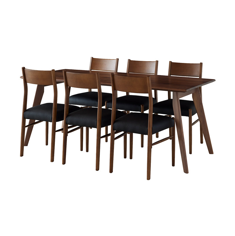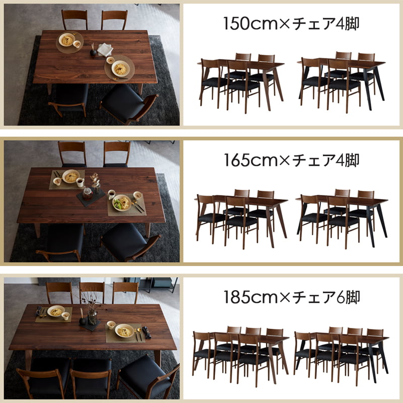 ダイニングテーブル ダイニングセット 北欧家具 木製テーブル 無垢材テーブル ウォールナット 天然木 食卓テーブル 4人掛け 6人掛け ファミリー向け ナチュラル モダン シンプル 高級感 新生活 引越し 家具セット チェアセット PVC座面 ウレタン塗装 長方形テーブル サイズ展開 ベトナム製