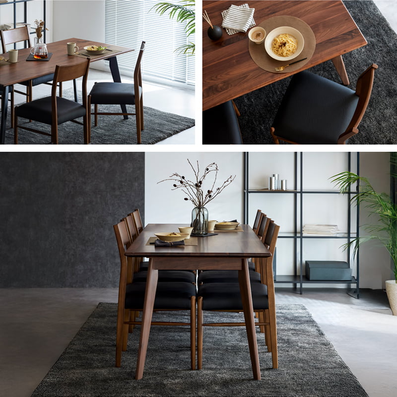 ・ウォールナット無垢材の豊かな表情が日々の食卓を彩ります。