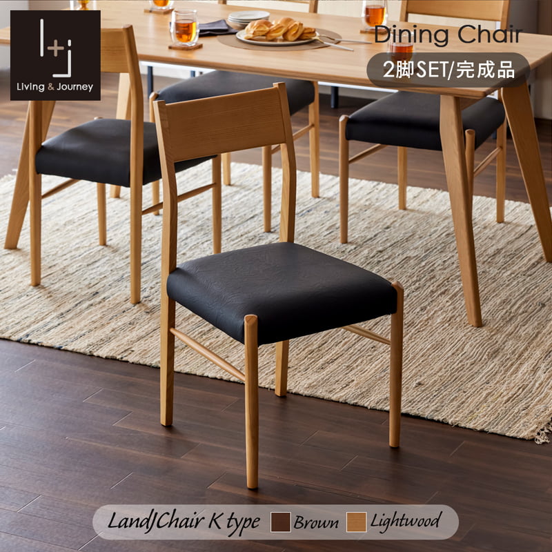 ダイニングチェア 2脚セット 無垢材 肘無し 軽量 軽い ブラウン クリアウッド ナチュラル Kチェア