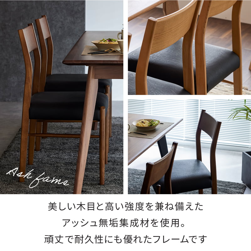 ダイニングチェア 木製チェア 食卓椅子 イス いす 2脚セット 椅子 軽量チェア 完成品チェア 北欧 ナチュラル モダン シンプル アッシュ 無垢 集成材 PVCレザー 合皮 水に強い お手入れ簡単 座り心地 柔らかい ウェービング エラストリック ウレタン 三層構造 肘なし 女性向け 移動しやすい フェルト付き 床傷防止 新生活 家具 ダイニング用